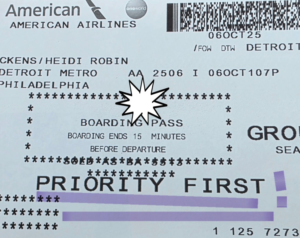 Our travels started on October 5th with a quick 33-minute flight from Traverse City to Detroit. I wrestled with adding this exoense to our tab instead of driving down, but the ease and convenience won me over pretty quickly. After an interesting night in a sub-par hotel that had none of the amenities that were listed on the website, we headed to the International terminal late that next morning to check our bags and head through security. On the first leg we were flying American Airlines, First Class to Philadelphia. Here’s when I got my first big lesson….do not spend the money for First Class on a 90-minute flight that has no in-flight entertainment screen, no working First Class lavatory, and snacks that were barely a notch above the mini pretzels they usually serve. The only perk we could see was free drinks, but with that short of a flight you can barely finish two if you’re lucky. I made a stong mental note that the more expensive seats should only be purchased for the long haul flights on the itinerary. In my defense, I used a travel agent to book the tickets, and they booked First or Business for each flight.