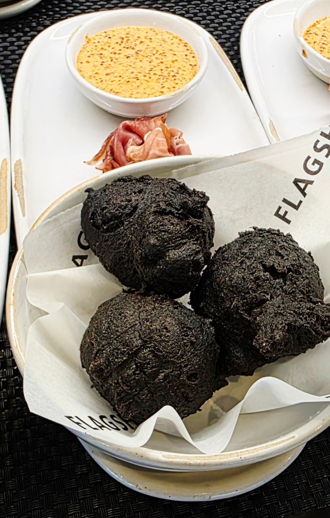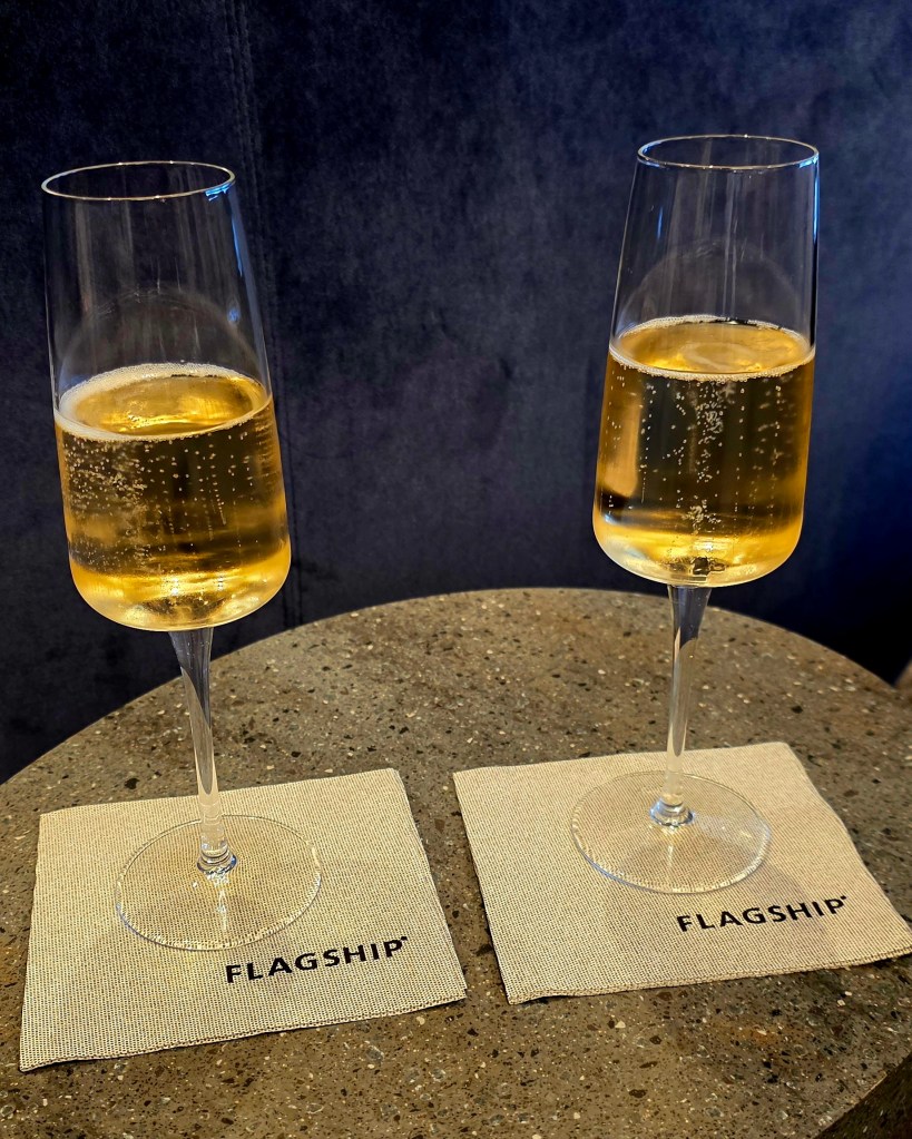 Once we arrived in Philly we were directed to the brand new Flagship Lounge for Business Class passengers. Once you scan your boarding pass the subway style doors swing open and a monitor says, “Welcome Heidi Robin.” Mine worked perfectly, but alas Jeff’s wouldn’t scan, so he had to get an attendant to let him in LOL!