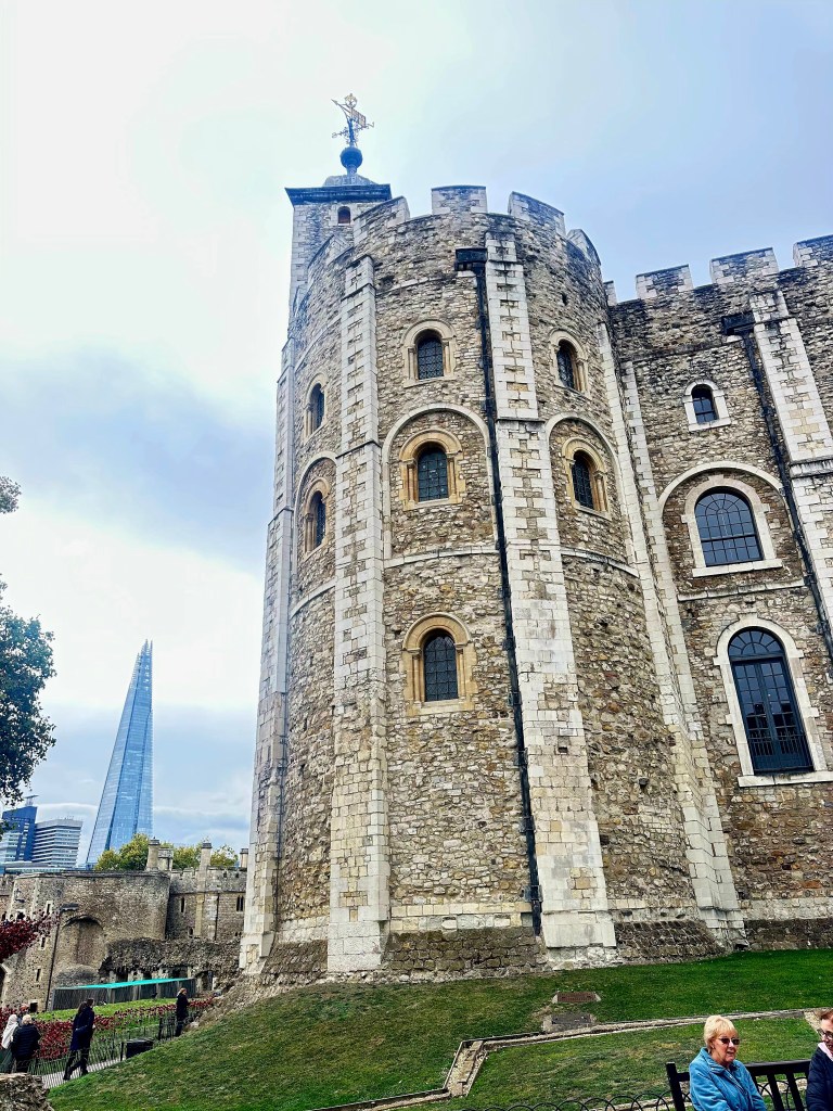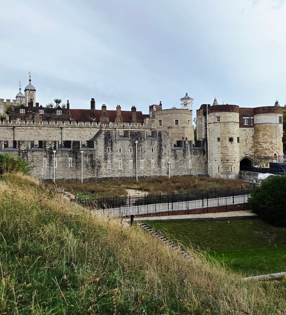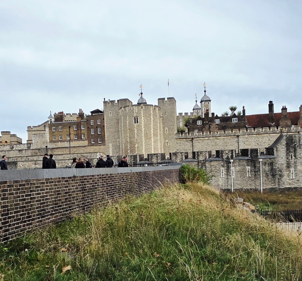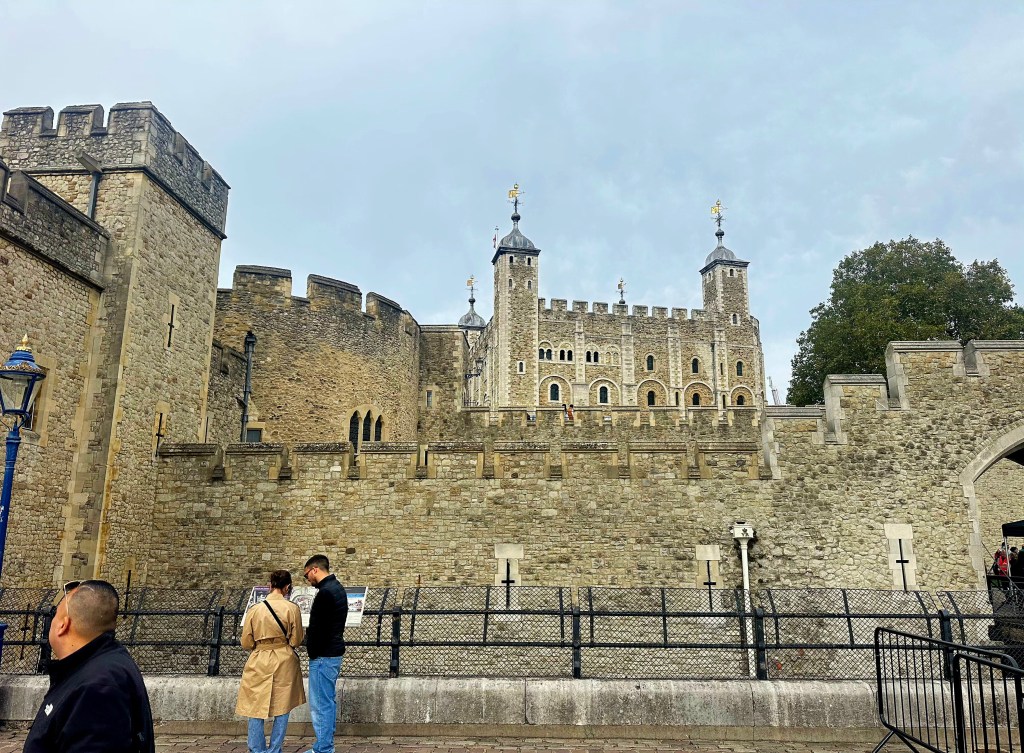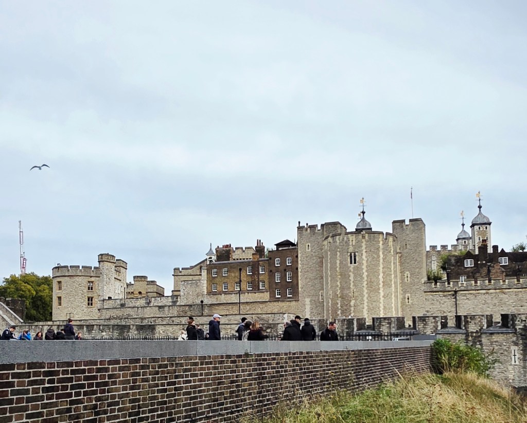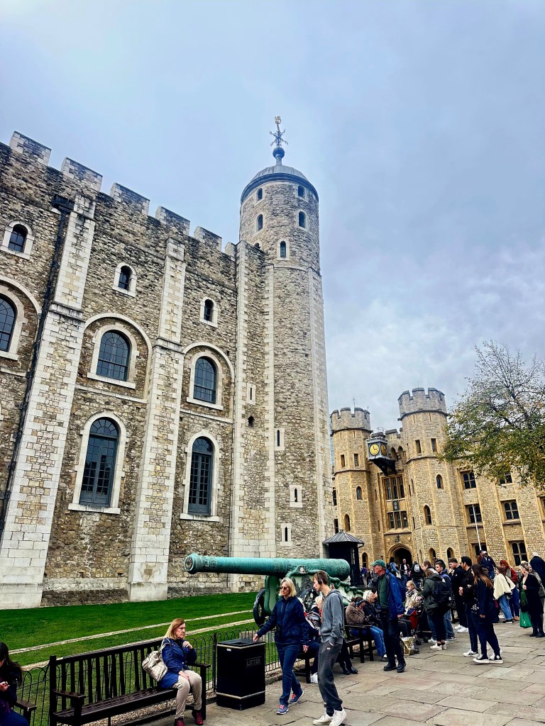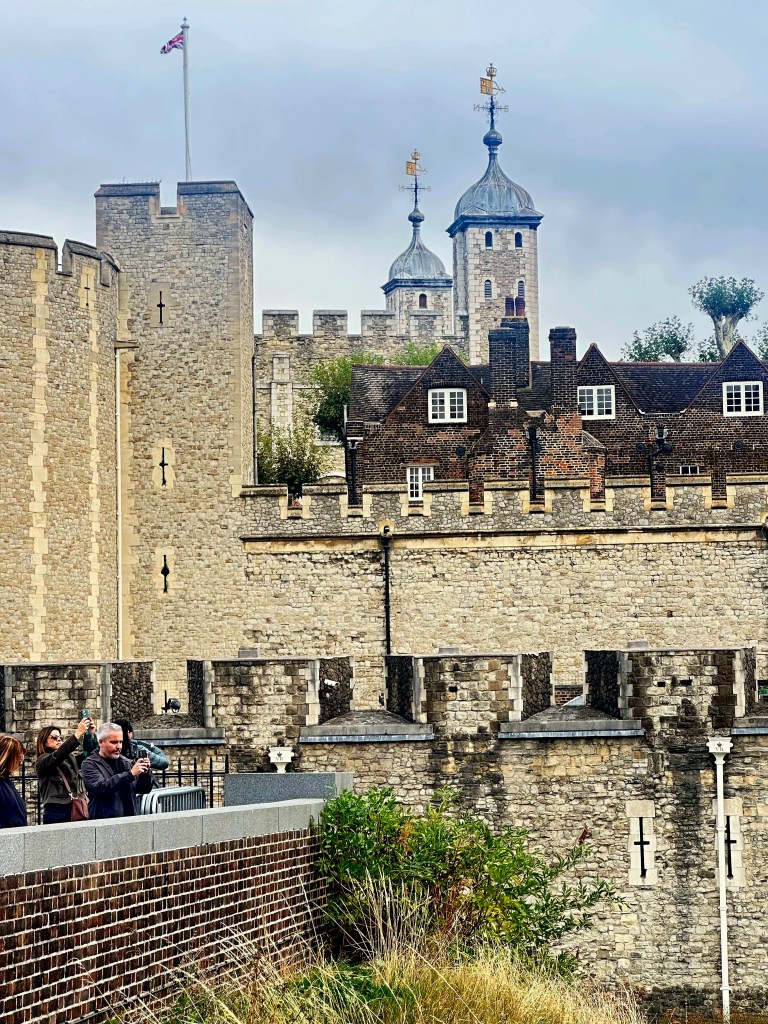 After lunch we grabbed a taxi to The Tower of London. I didn’t really know a lot about it before going, other than it housed the Crown Jewels, some of which were seen and talked about a couple of years ago when Charles had his Coronation as King. The Tower is a historic citadel and castle on the north bank of the River Thames in London. It was founded toward the end of 1066 as part of the Norman Conquest. A grand palace early in its history, it served as a royal residence. As a whole, the Tower is a complex of several buildings set within two concentric rings of defensive walls and a moat, which is no longer in existence.