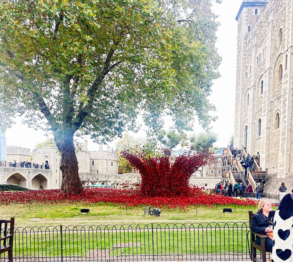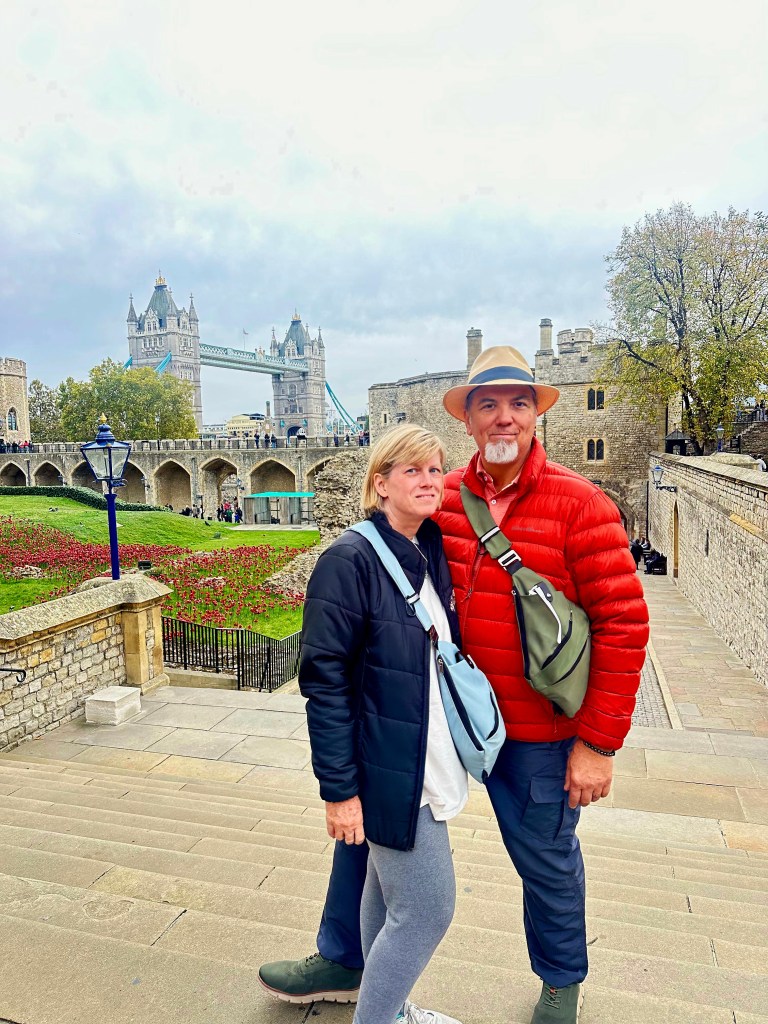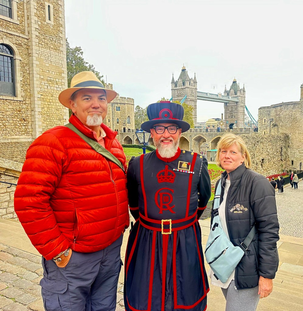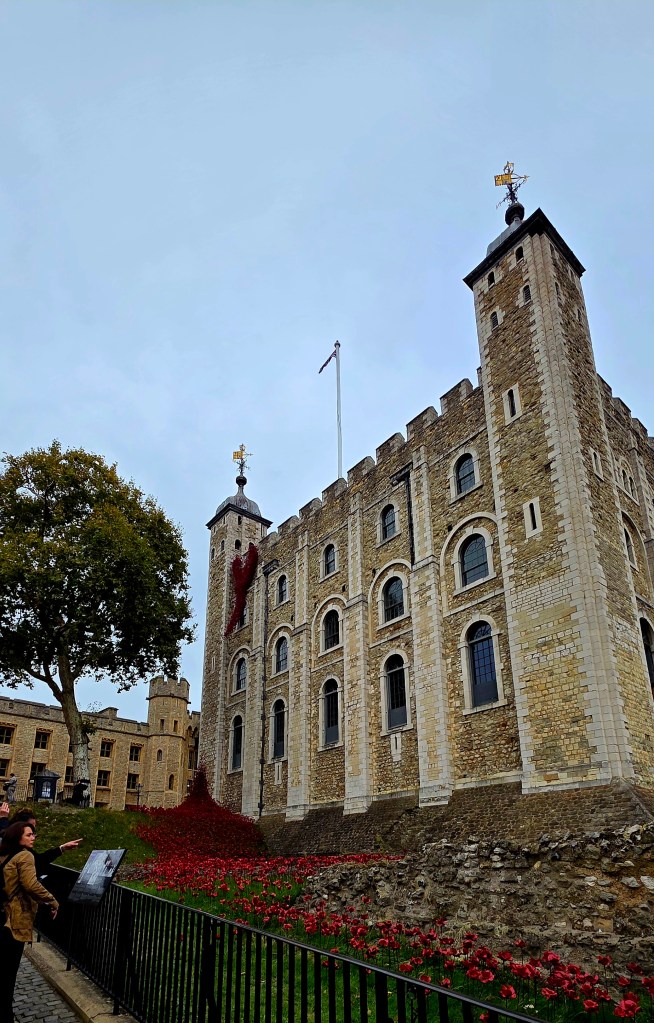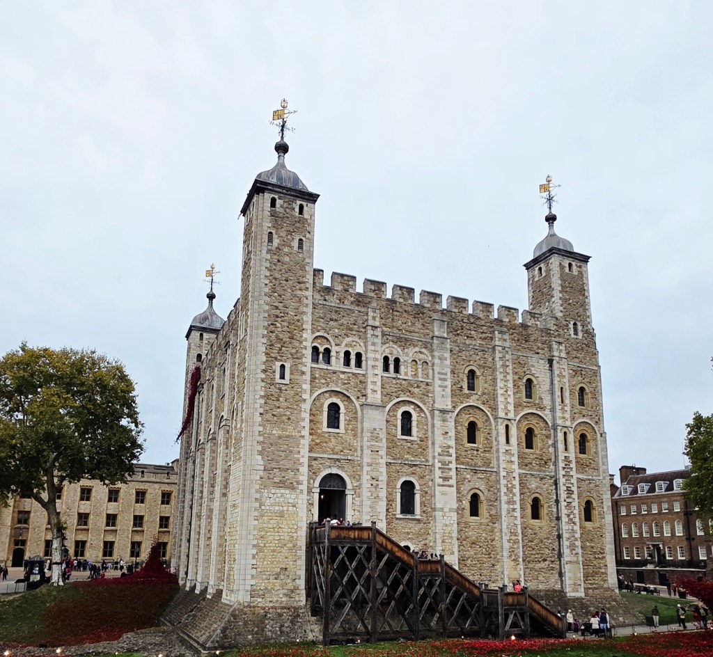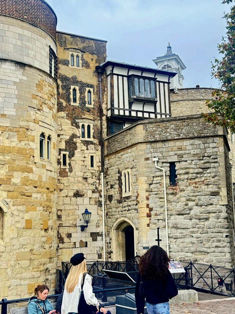 After lunch we grabbed a taxi to The Tower of London. I didn’t really know a lot about it before going, other than it housed the Crown Jewels, some of which were seen and talked about a couple of years ago when Charles had his Coronation as King. The Tower is a historic citadel and castle on the north bank of the River Thames in London. It was founded toward the end of 1066 as part of the Norman Conquest. A grand palace early in its history, it served as a royal residence. As a whole, the Tower is a complex of several buildings set within two concentric rings of defensive walls and a moat, which is no longer in existence.