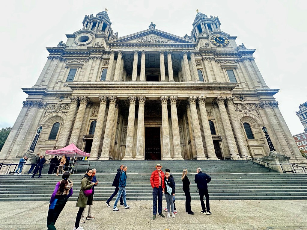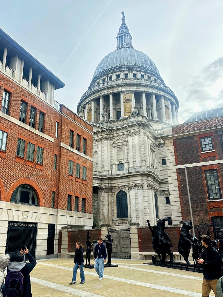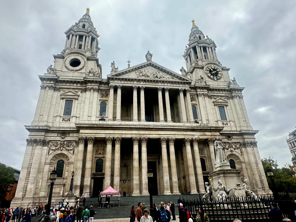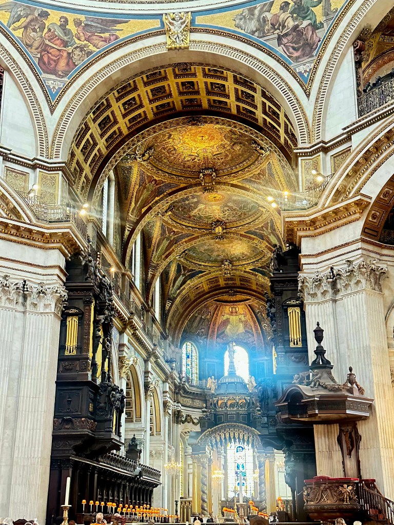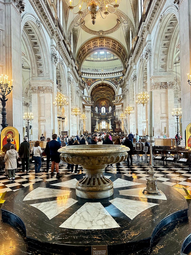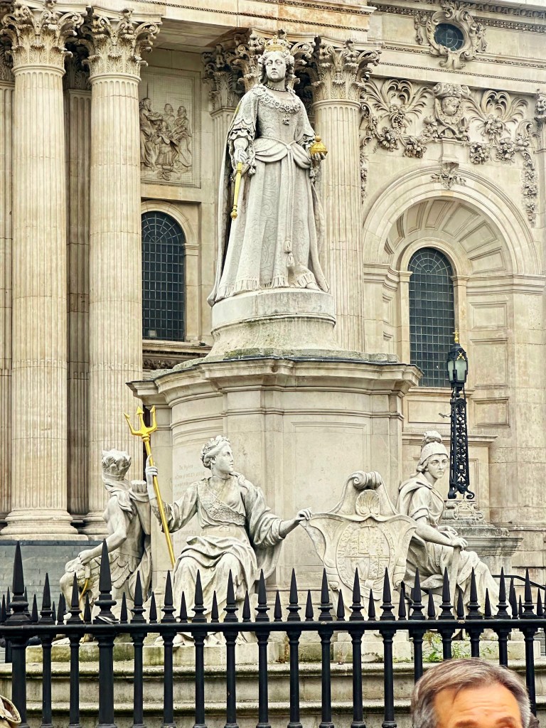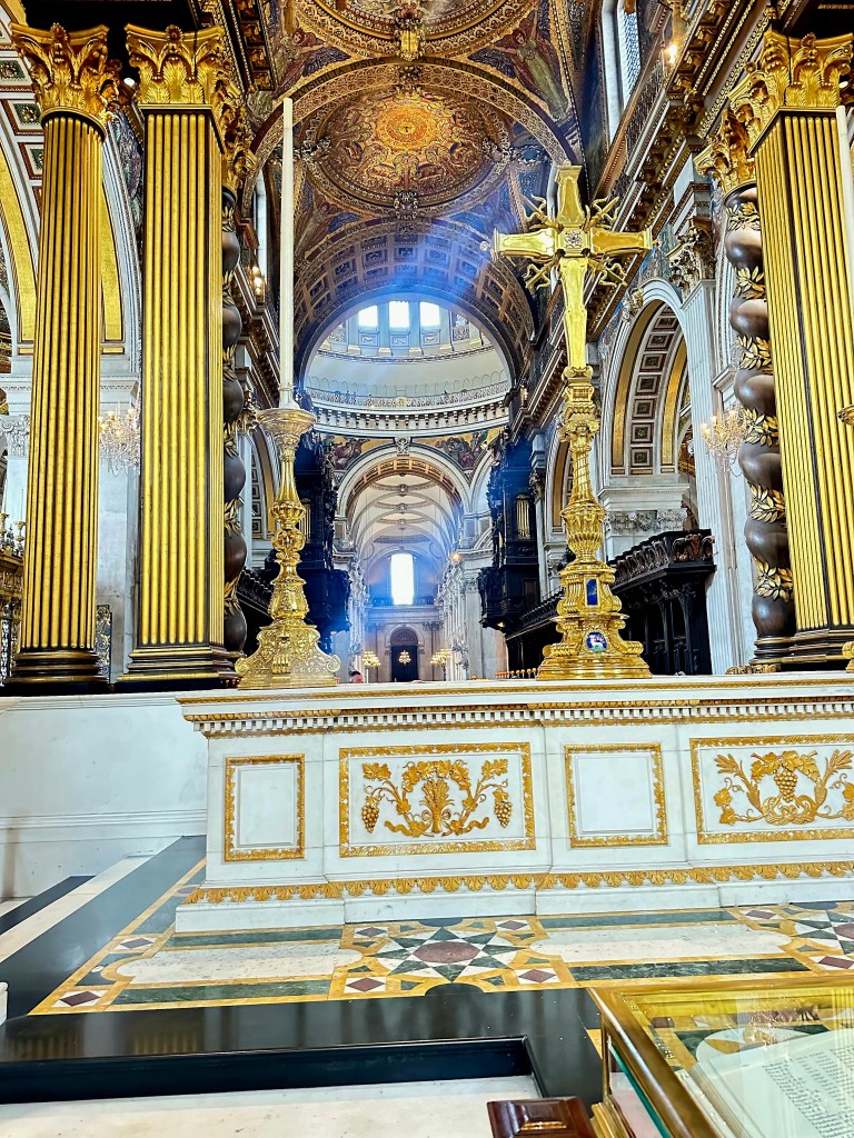 Our London guide is a fabulous woman named Roxy, and we spent six amazing hours with her today touring St. Paul’s Cathedral and The Tower of London. Someone or something in the universe has decided to gift us with our London version of Ranger James. Her tours were so in depth and full of great historical facts that were presented in a super interesting, yet easy to understand format! On our wat to St. Paul’s she pointed out Trafalgar Square, which is one of the most popular tourist spots in London. When we got to St. Paul’s, she talked a lot about the history of the cathedral, which had been rebuilt several times since it’s first inception in 604! (Yes, 6-0-4!) It was destroyed and re-built several times due to fires and wars, the most famous of which was the Great Fire of 1666, which ended up destroying 80% of what was London at that time. The current cathedral was completed in 1710, and is known especially for it’s iconic dome.