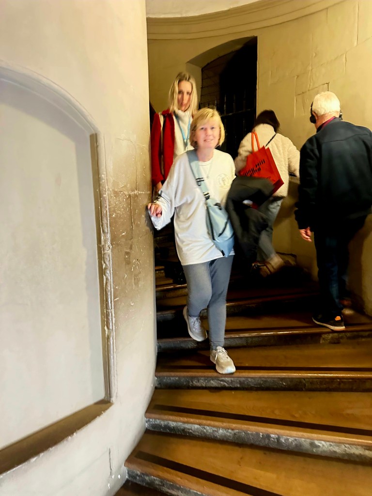 Roxy led us inside and gave great information about some of the statues and artwork inside. This was after we picked our jaws up off the floor upon entering. Magnificent isn’t really a strong enough word for what you see when you walk inside. We then learned that for the bravest and fittest visitors, there was the option to climb FIVE HUNDRED STEPS up to the base of the dome and enjoy fantastic 360° views of the city. Roxy asked us if we’d like to do this, and Jeff of course said yes!