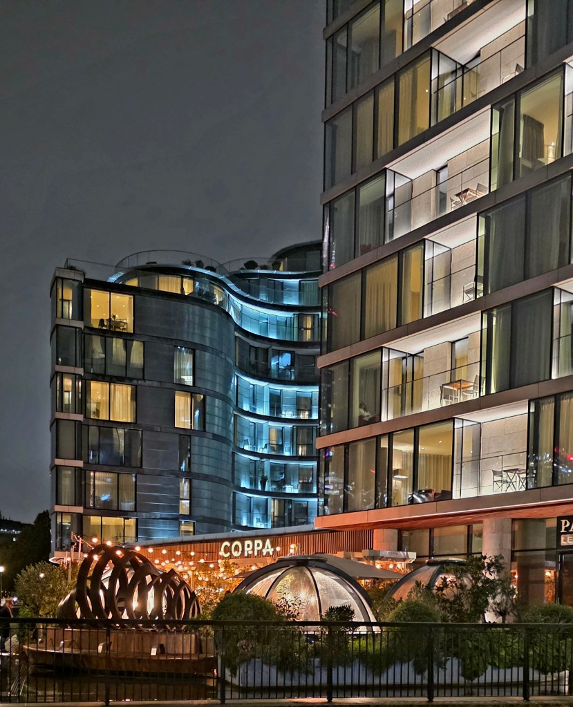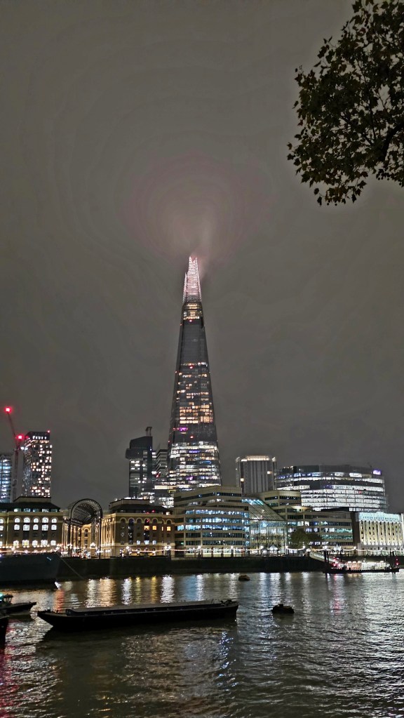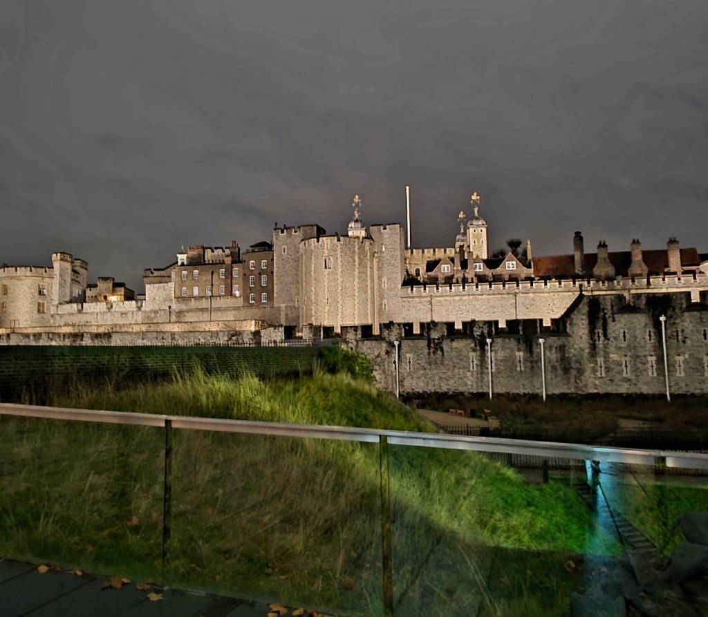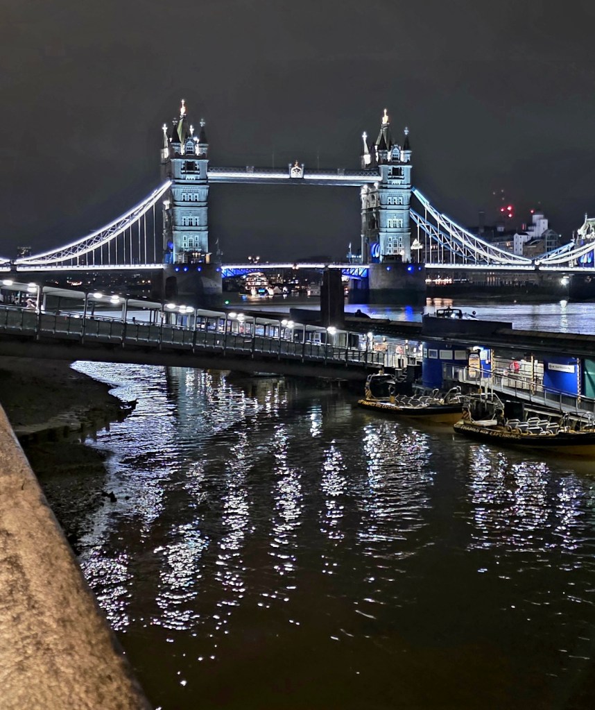 Another special part of the day was when we went to a place called The Woolen Weavers of The Cotswolds, which is a historic wool mill and loom shop. The shop and store are closed on Mondays, but as a favor to our tour guide, the owner opened it up and gave us a tour of the original looms which ARE STILL USED TODAY, and let us browse around the shop. We each got a nice memento from this stop! After almost 8 hours of exploring, it was time to head back to London. We were pretty tired, so we opted to have dinner in the hotel and get packed up. The previous night we had eaten out at a fun place on the Thames River, and I got some nice nighttime pictures that I’ll put with today’s story.