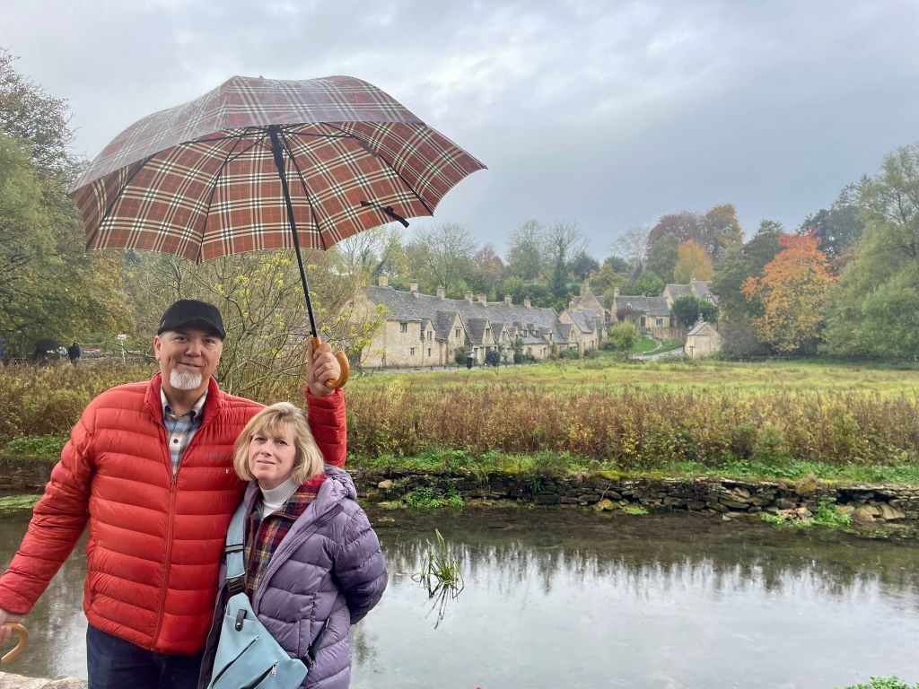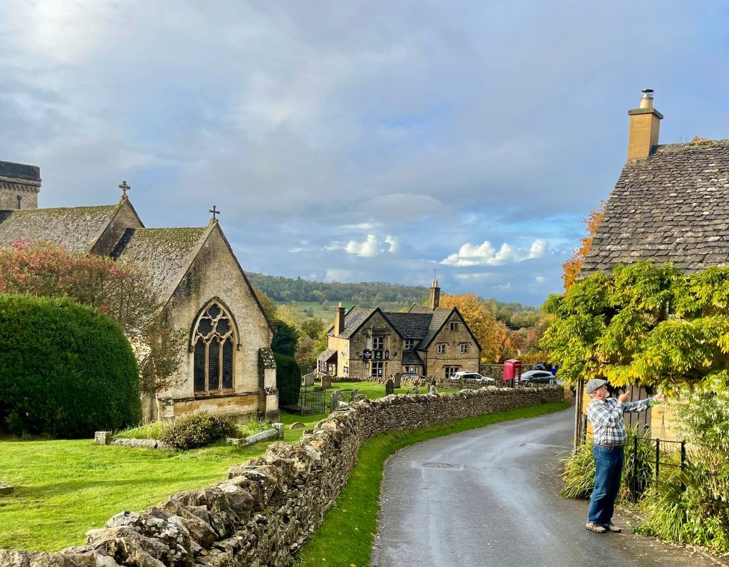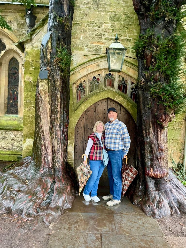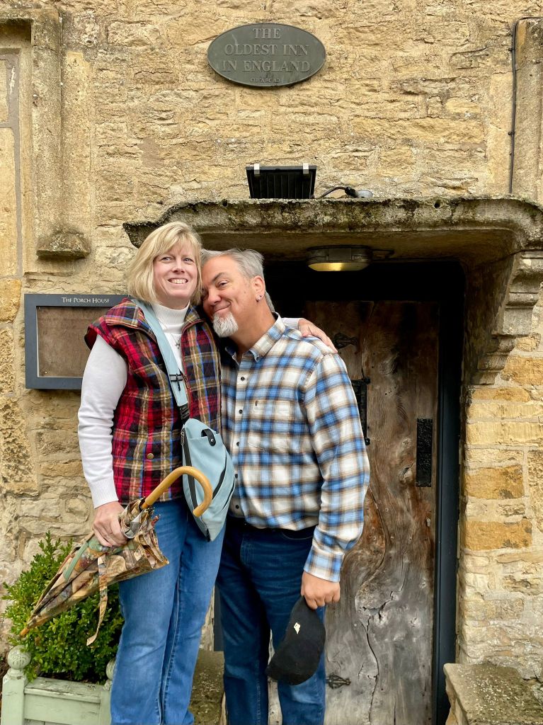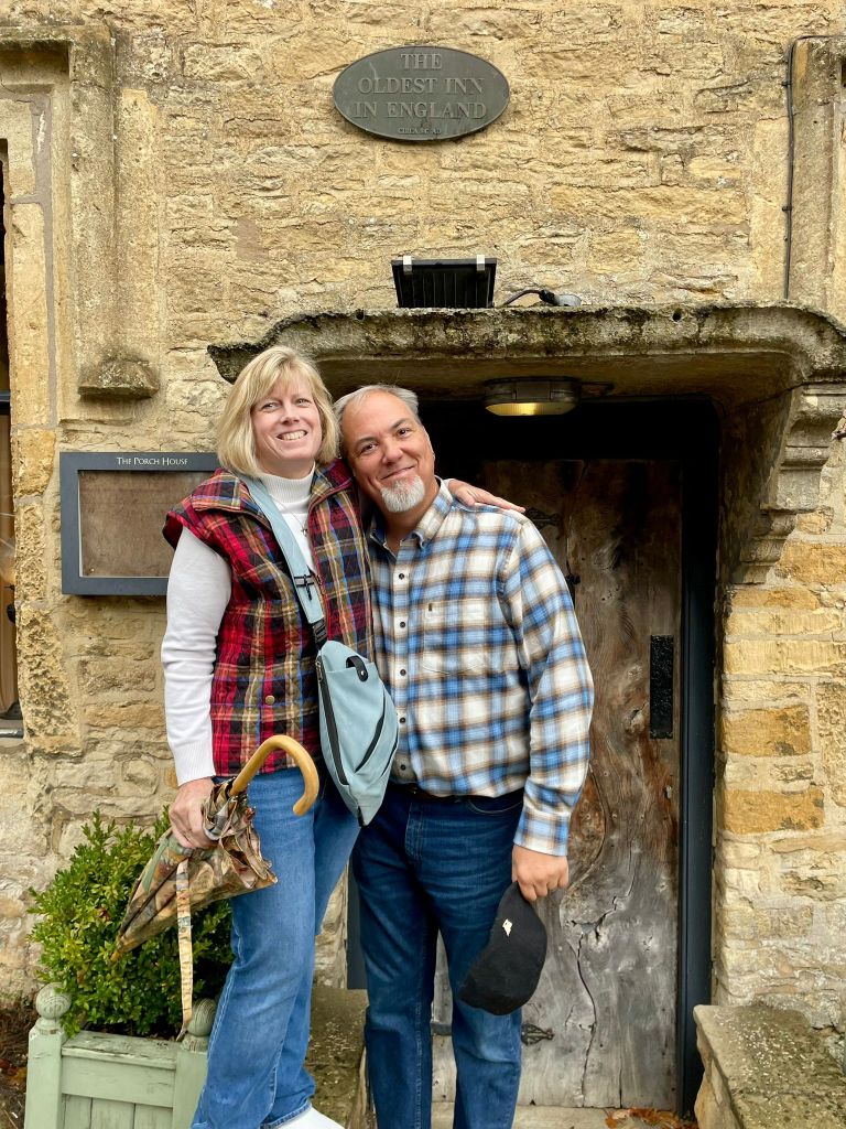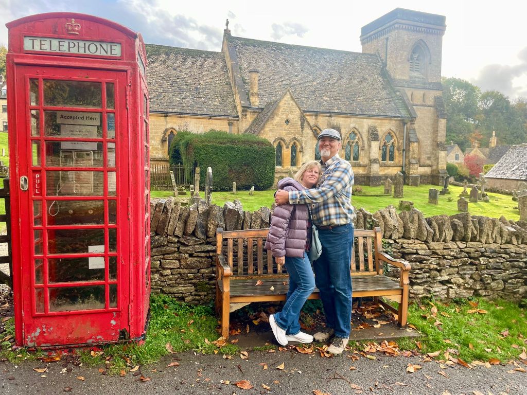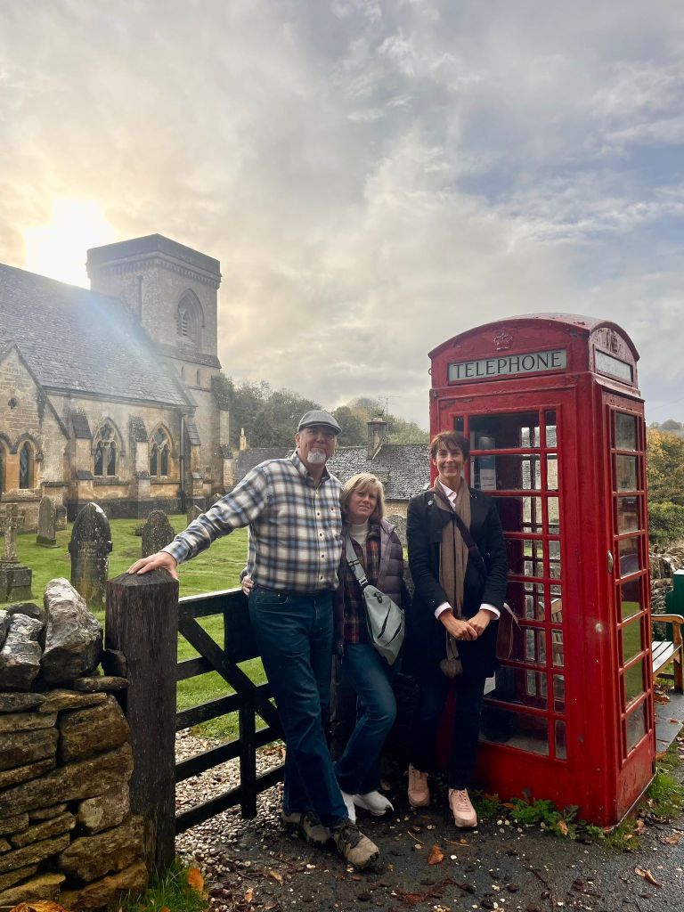 I’m not going to list all the places we went, although I do have them written down. I’m going to let the pictures speak for themselves. One side story from the day that is pretty important to me has to do with a trip back in time, nearly 40 years ago! In 1986 my Mom and Dad took my sister Kristin and I to England and France during our spring break. I was 14 and she was 18. One of the places we spent a couple of days was The Cotswolds. I had a couple of very vivid memories of this trip, and as we started driving through the area, I started to wonder if maybe we would stop at any of the same spots I had been to 39 years ago. This idea became so persistent that when we stopped for coffee break at a café in village 3, I called RJ (it was about 7:45 a.m. his time) and asked him to dig out the photo album I had made of that trip. Luckily I knew exactly where it was! He obliged, and gave me the name of the hotel I had recorded, and the place we had lunch that I took a photo of some lovely scenery. When I ended the call and gave the name of the hotel to our guide, Laura, she exclaimed, “That’s where we’re going next!” And in another ironic twist, the place where I took the memorable photograph is located in her hometown! (Which we weren’t going to visit, but that’s ok!)