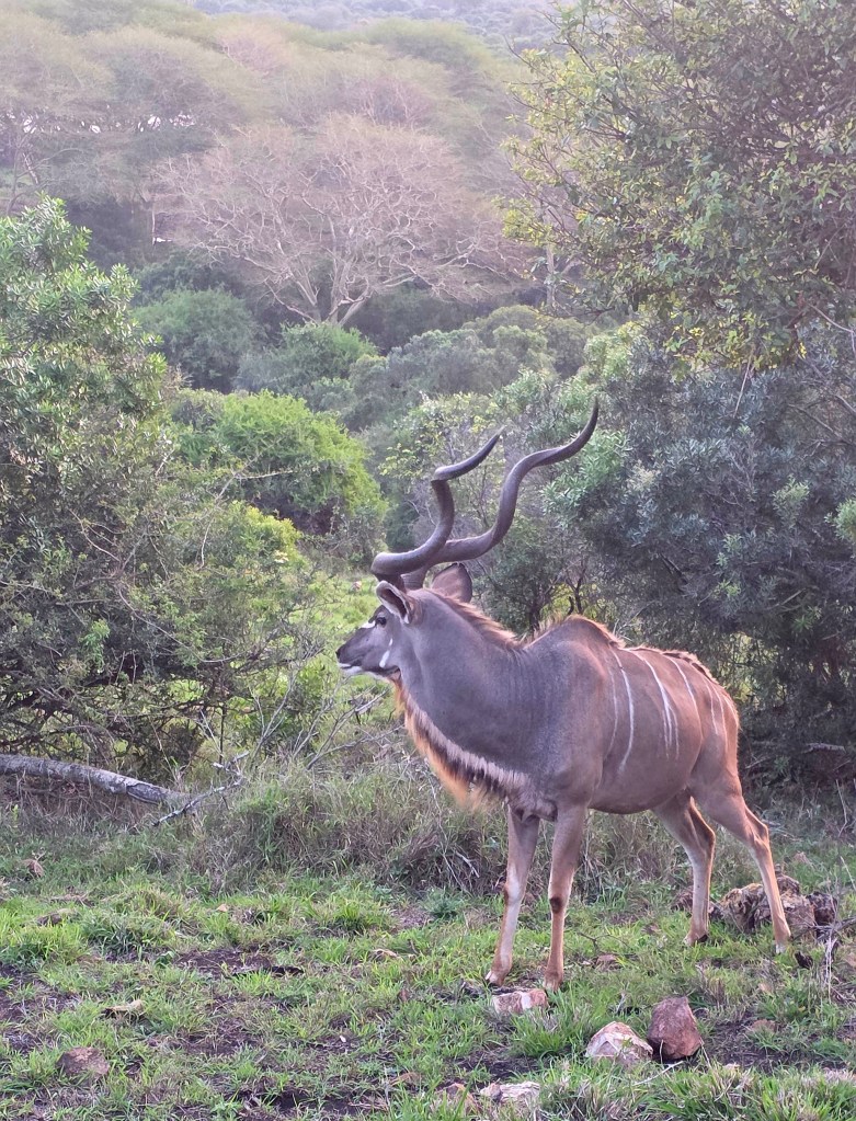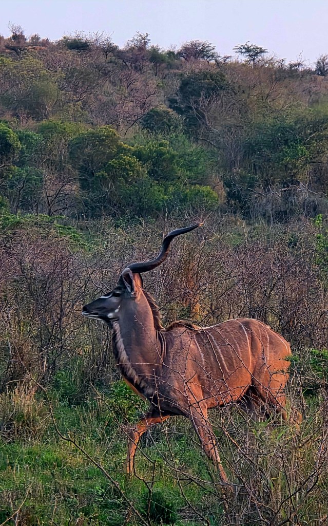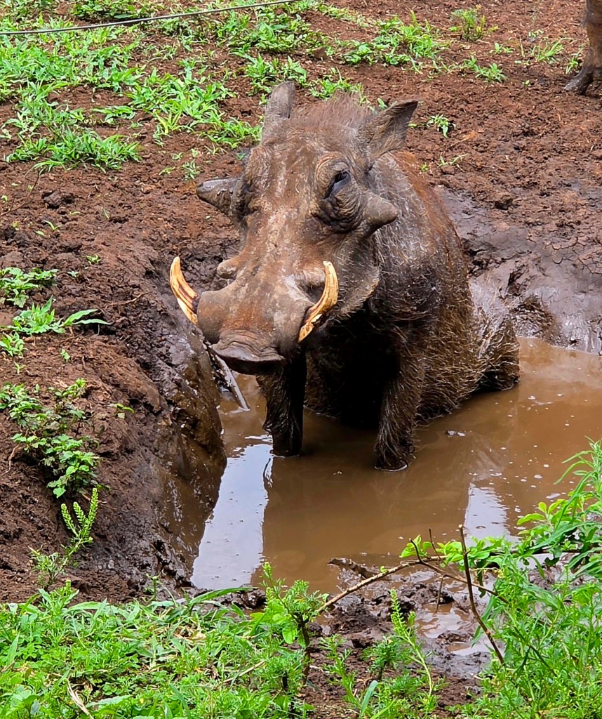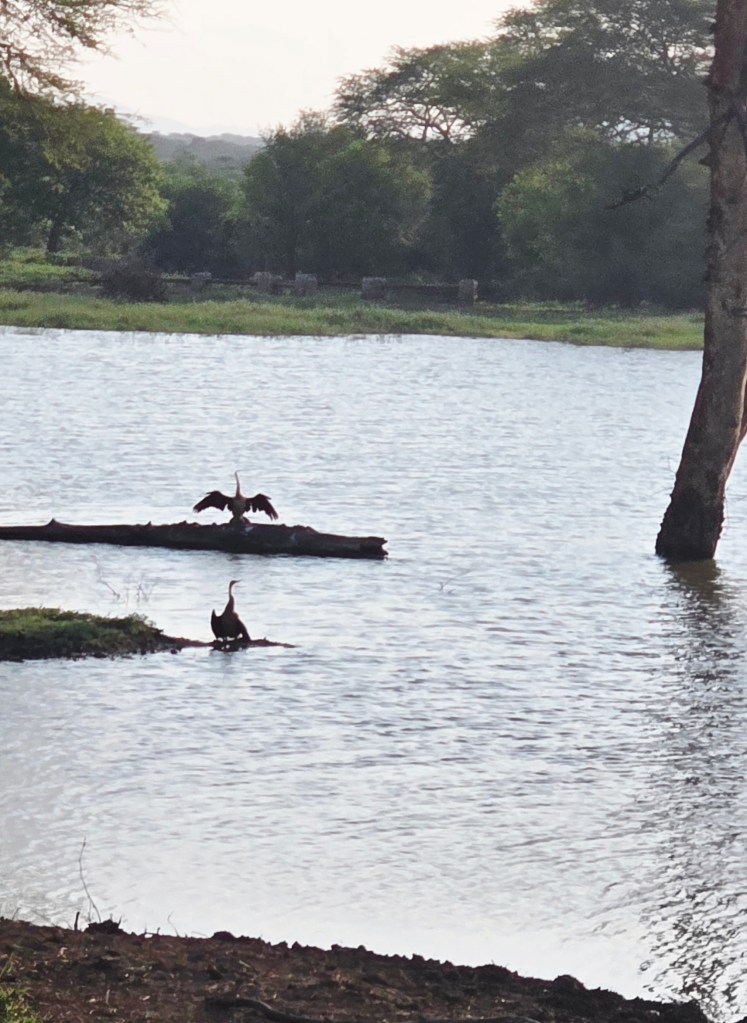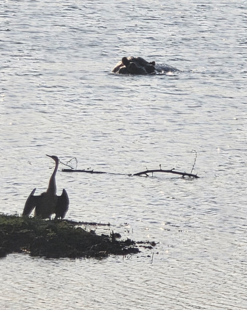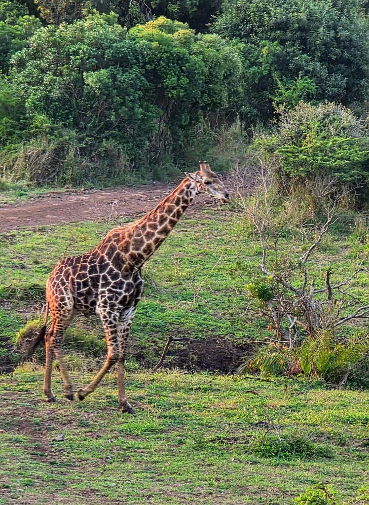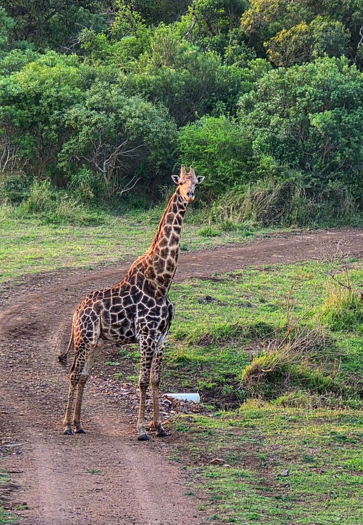 Today when we joined our ranger for the morning drive we met the third and final group of our party. As coincidence would have it, they are from Bay City, Michigan! Talk about a small world when you travel halfway around it just to meet fellow Michiganders!! Our morning game drive was nice, but not quite as many animals. The best part of the morning drive was the video I got of two young male giraffes “necking,” which is how they play before they are old enough to spar! I’d seen videos of this before, but was so excited to see it in person!!