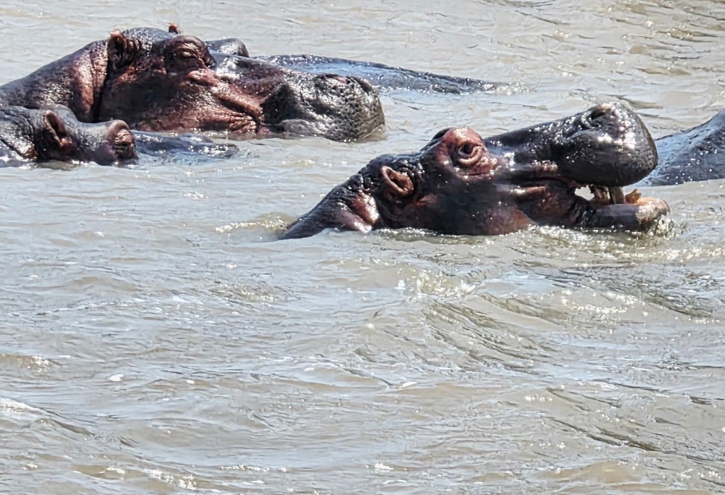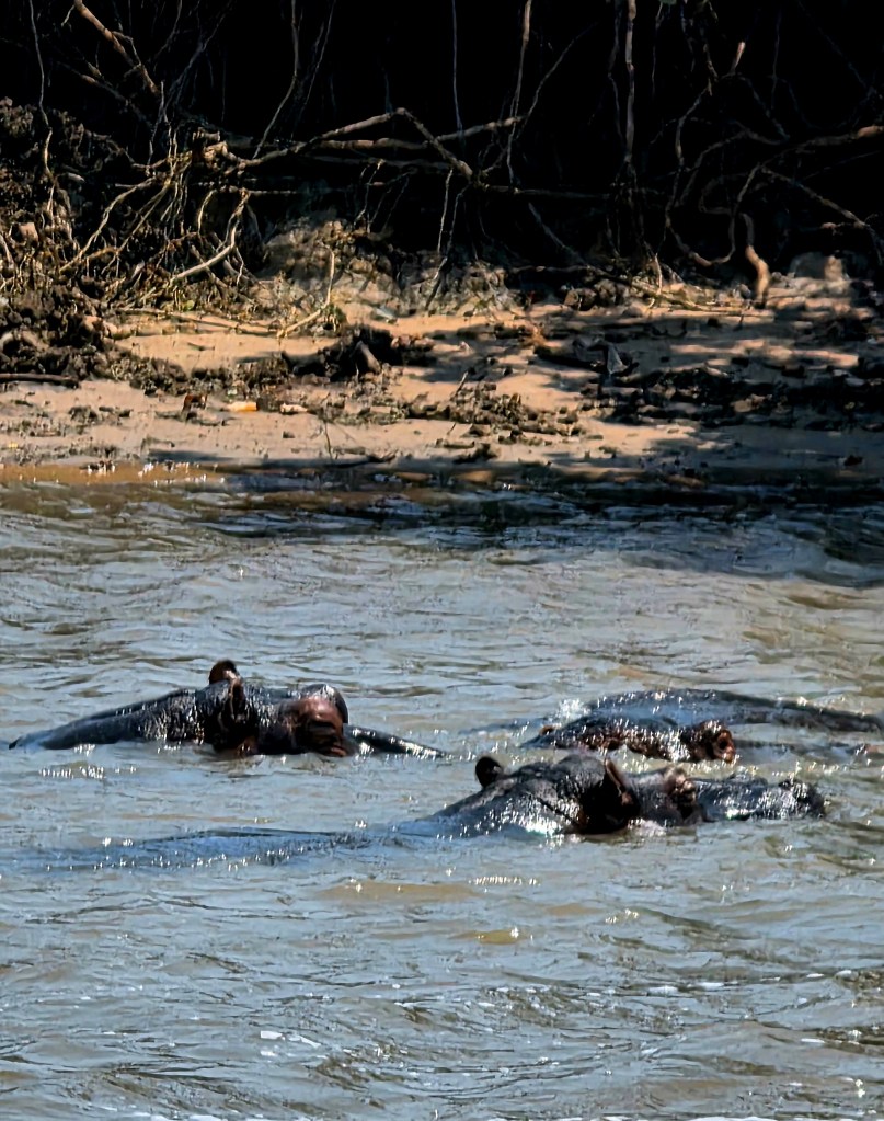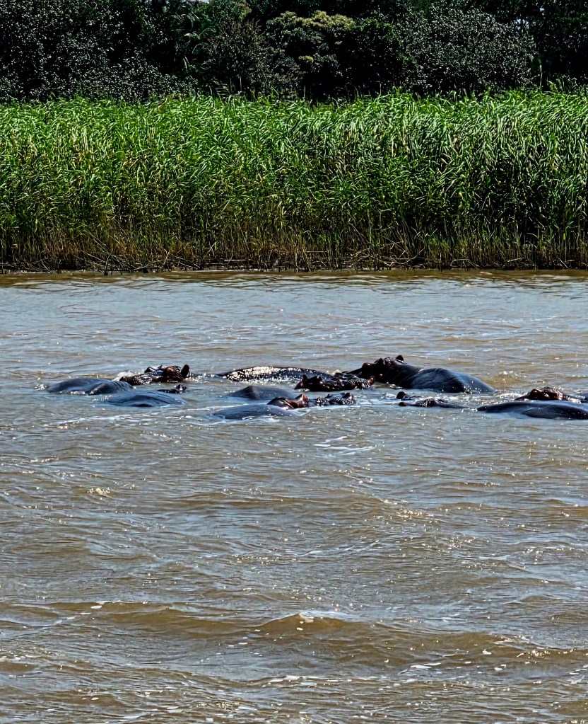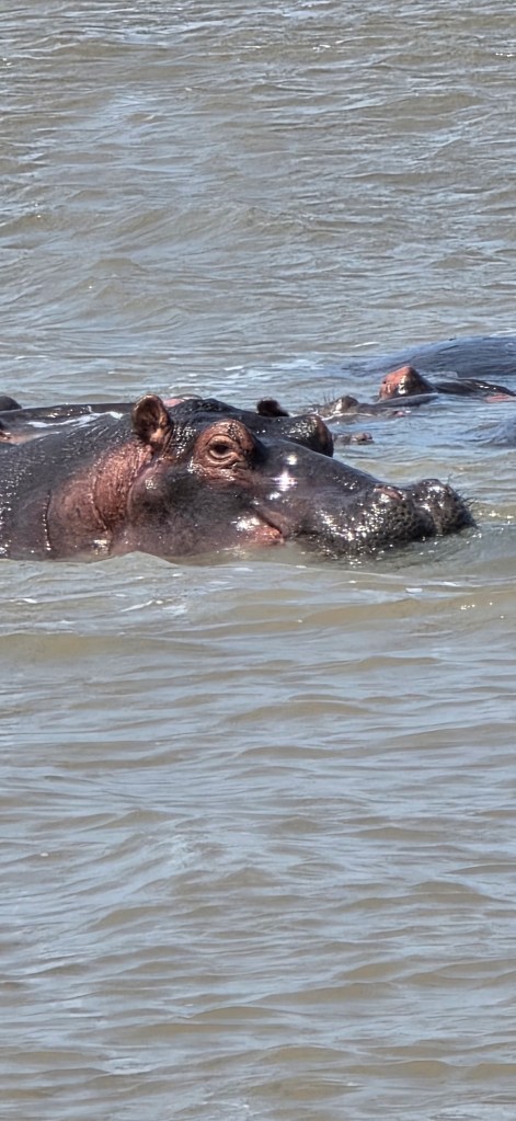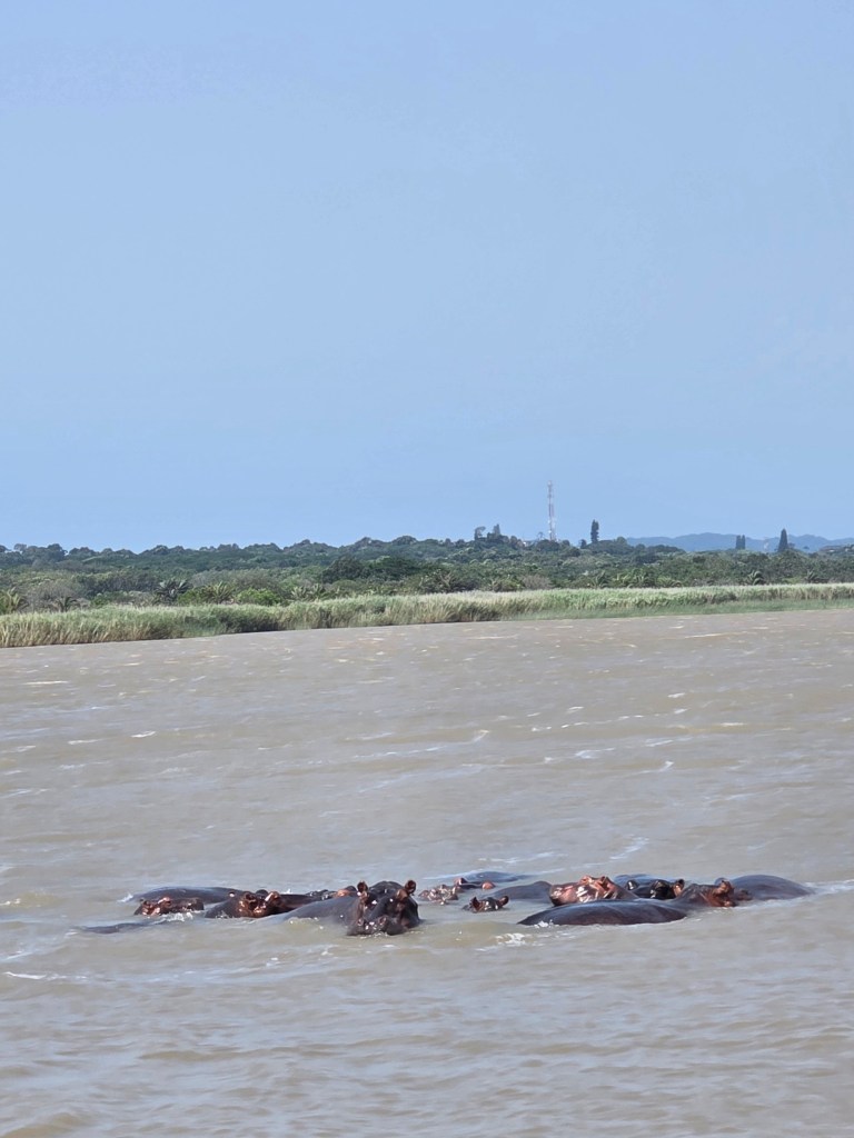 Today we got a late start….7:45 a.m. instead of 6:00! What a treat! Our itinerary for the day included a drive to St. Lucia with a stop at a coffee shop on our way to the river boat ride to see some hippos! It was a gorgeous day for a leisurely boat ride down the river. We saw several pods of hippos with their babies, but they were all mostly submerged in the water, so that meant mostly head shots! As we drove into St. Lucia we saw a sign that read, “Caution! Hippos roam the streets at night.” We thought this was funny until our boat captain said that among the few hundred hippos in the area, many do leave the water and walk on the main street at night! And hippos ARE Africa’s #1 most dangerous animal! More people are killed each year by hippos than any other animal. This was definitely news to me!!