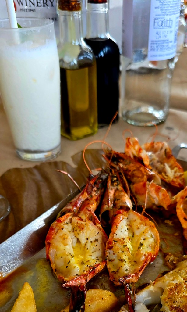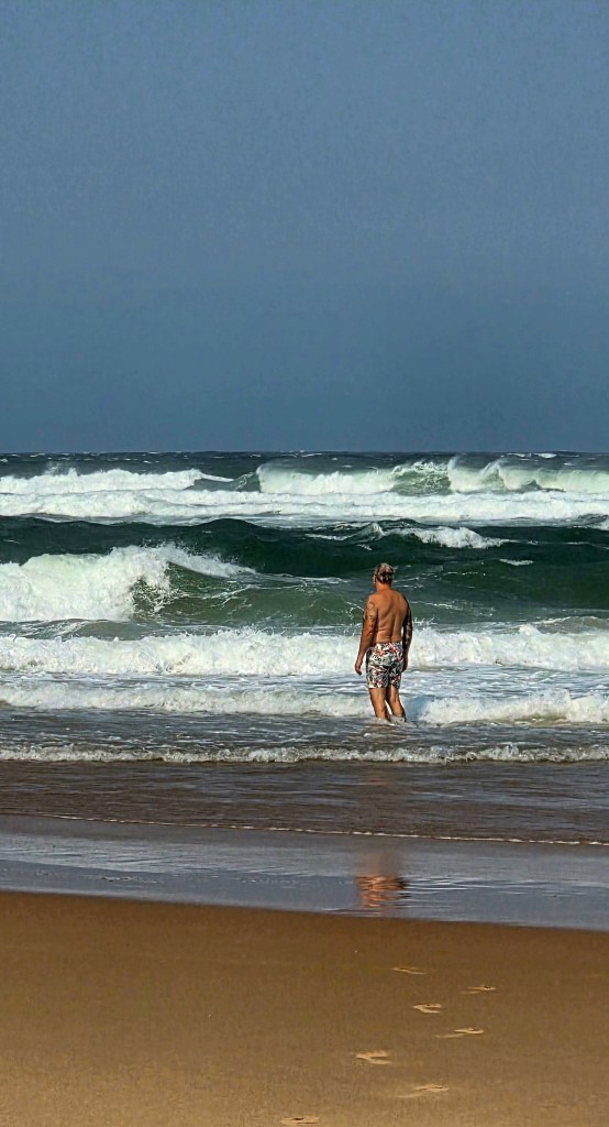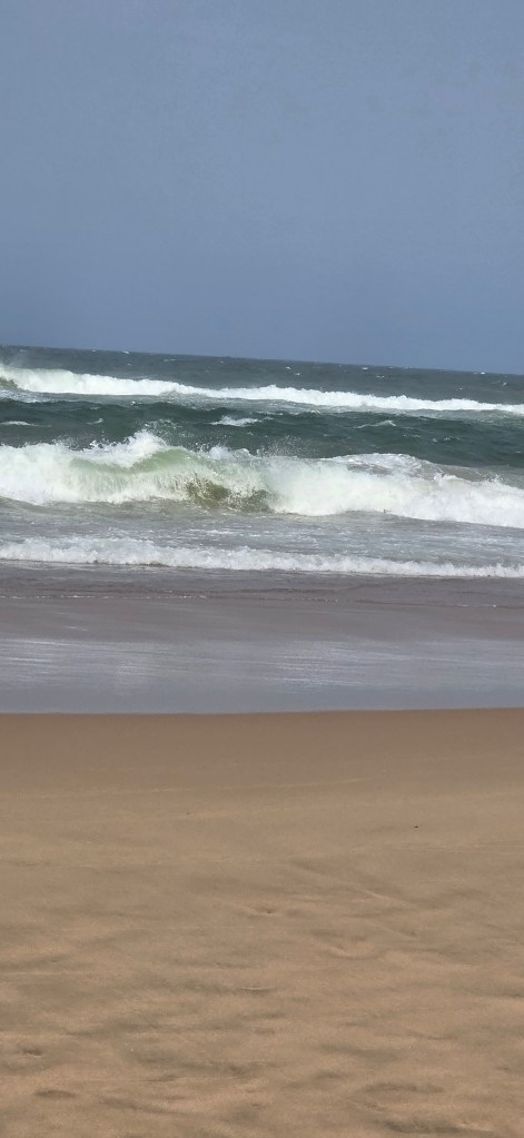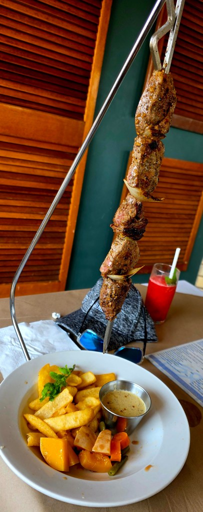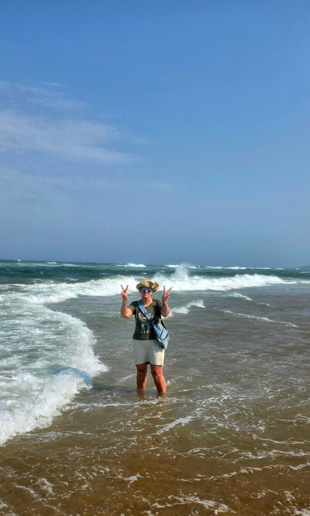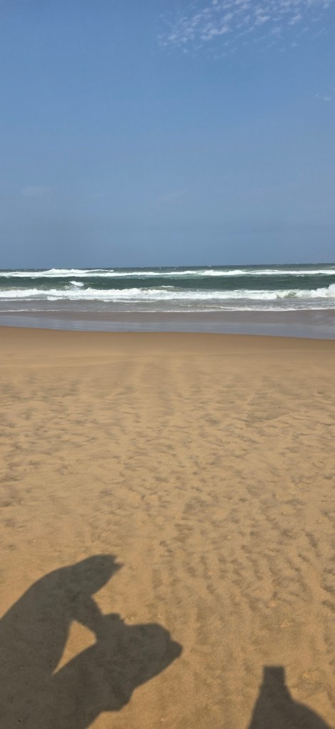 After the boat ride we headed back to the center of St. Lucia for an AMAZING lunch at a Mediterranean restaurant. I had a beef kabob, and Jeff had a seafood platter with huge prawns! After lunch we did a bit of shopping on the main street, including a local craft market. Our next stop was the beach, and everyone in the group was excited about getting to swim in the Indian Ocean. And since the temperature was about 85° Celsius, the beach sounded great! What we didn’t take into account, sadly, was the stiff 35-40 MPH winds that were blowing steadily at the beach. This meant walking across the sand to the water’s edge was a relatively uncomfortable task, with sand hitting your legs in a somewhat brutal and stinging fashion. Nonetheless, we all made it to the water, and several members of out group did swim, including Jeff. There was a pretty strong rip current, so those that actually went out far enough to swim were pretty brave if you ask me!