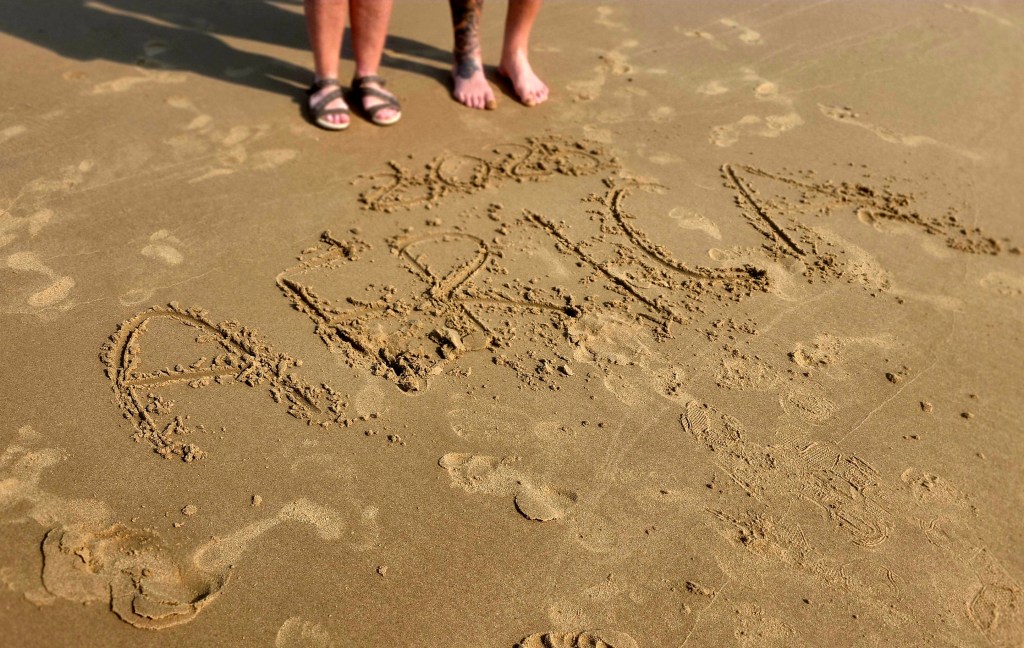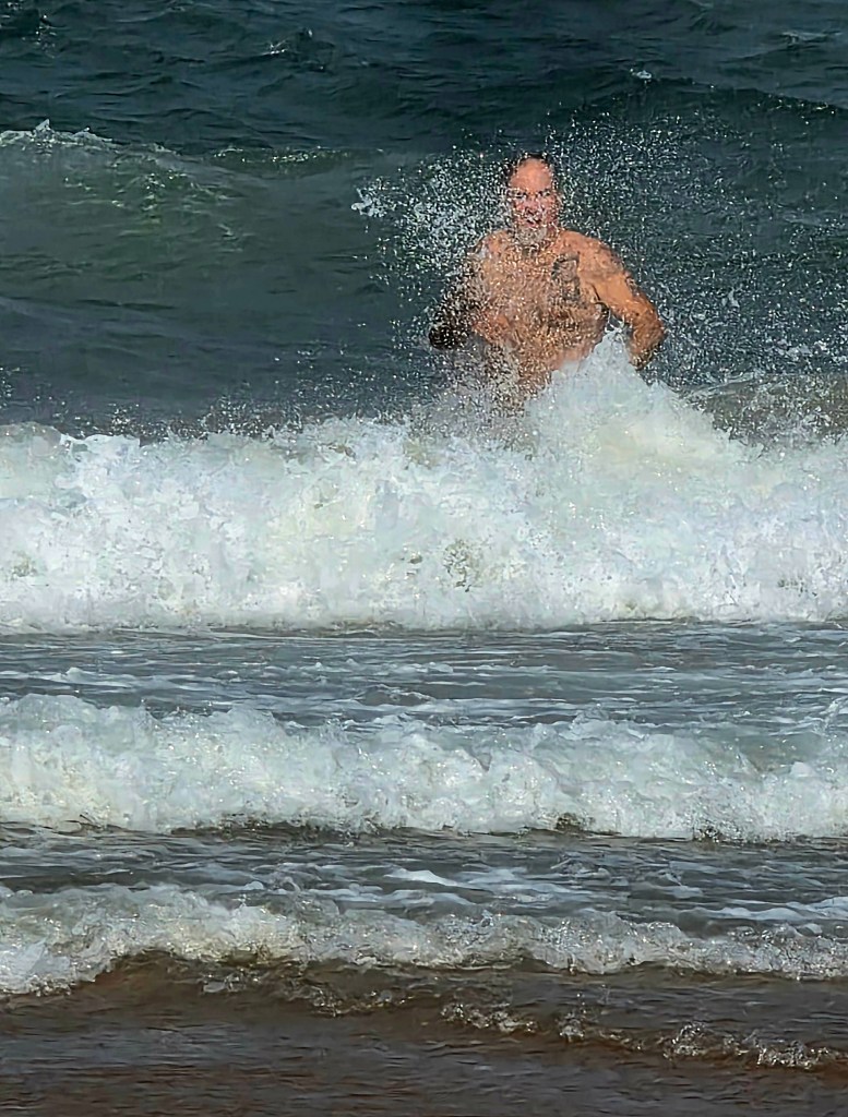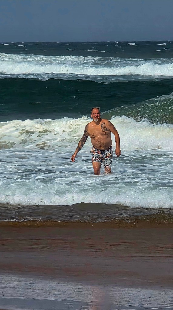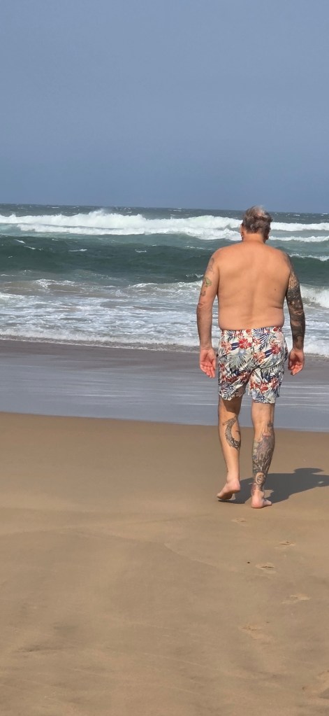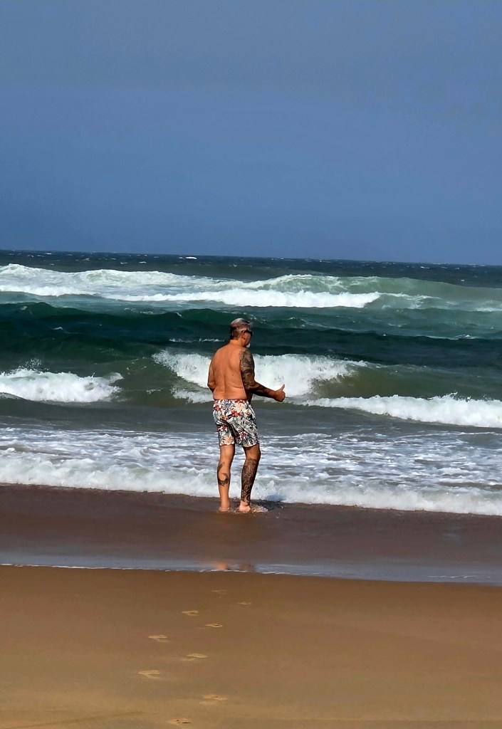 After the boat ride we headed back to the center of St. Lucia for an AMAZING lunch at a Mediterranean restaurant. I had a beef kabob, and Jeff had a seafood platter with huge prawns! After lunch we did a bit of shopping on the main street, including a local craft market. Our next stop was the beach, and everyone in the group was excited about getting to swim in the Indian Ocean. And since the temperature was about 85° Celsius, the beach sounded great! What we didn’t take into account, sadly, was the stiff 35-40 MPH winds that were blowing steadily at the beach. This meant walking across the sand to the water’s edge was a relatively uncomfortable task, with sand hitting your legs in a somewhat brutal and stinging fashion. Nonetheless, we all made it to the water, and several members of out group did swim, including Jeff. There was a pretty strong rip current, so those that actually went out far enough to swim were pretty brave if you ask me!