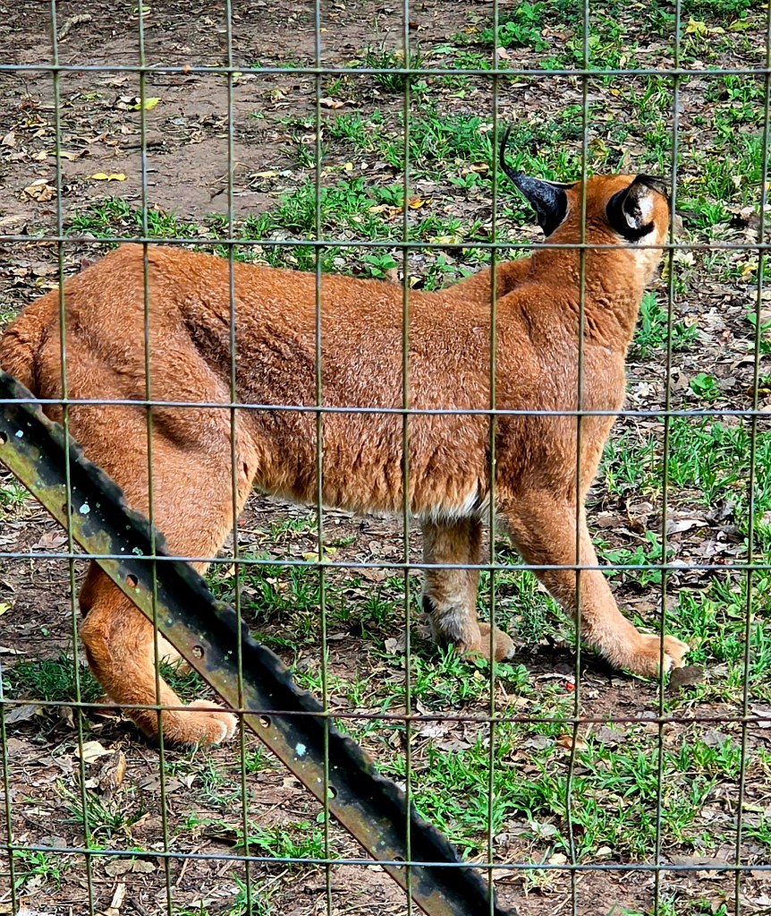 After our short trip to the beach we truged back across the sand to our van. At this point we were all feeling a little hot, tired, and now very sandy!! We had a 35-minute drive to the next stop, and several of us managed to catch nap on the way. Our final destination for the day was the Zululand Cat Conservation Park, that rescues and rehabilitates African wild cats, Servals, Caracals and Cheetahs. The Caracals displayed some unbelievable jumping abilities, and the cheetahs were beautiful.